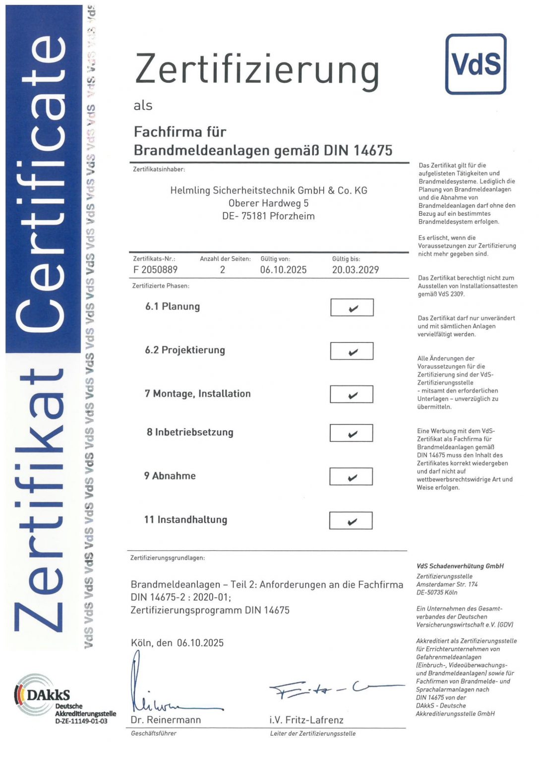 VdS Zertifikat DIN 14675